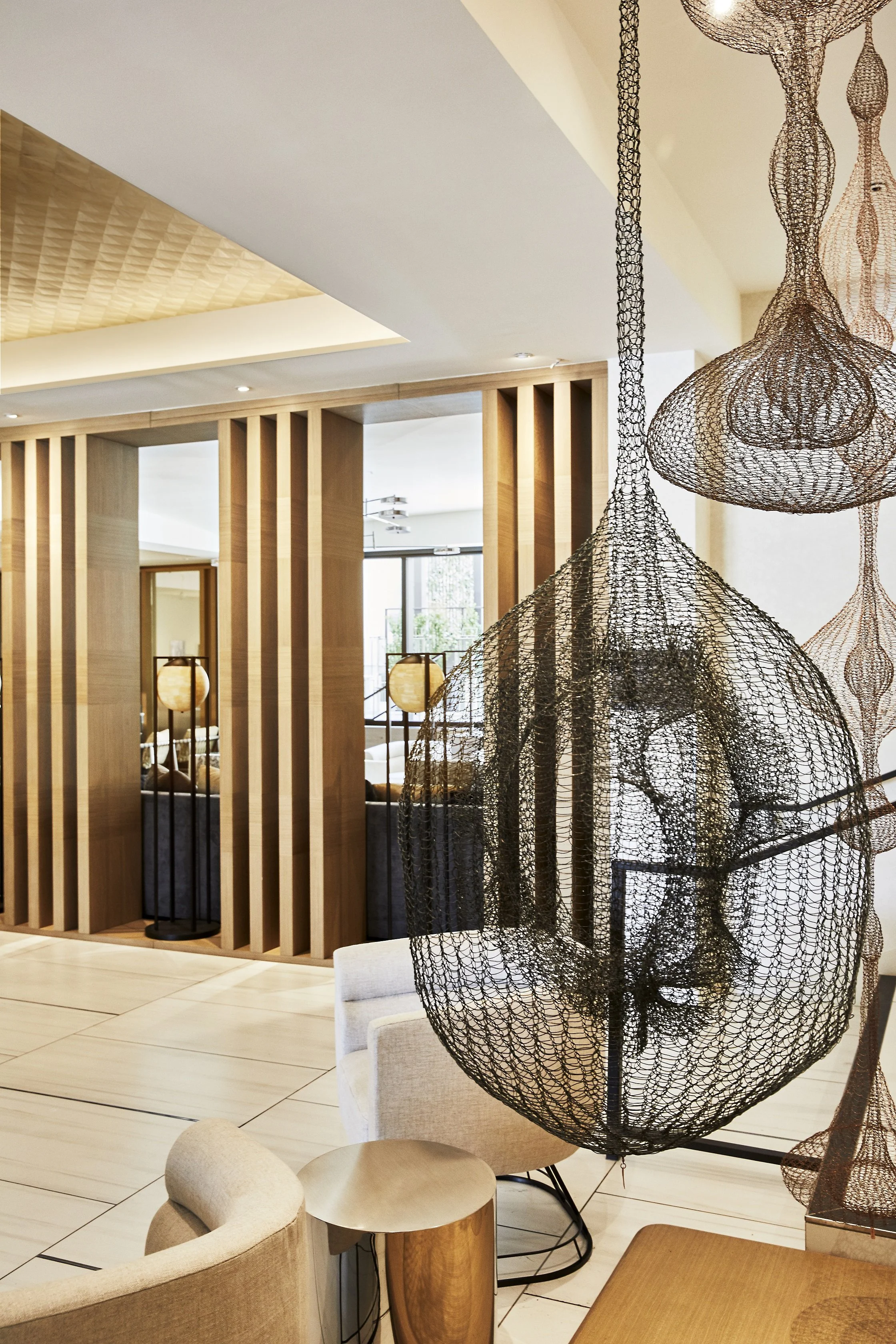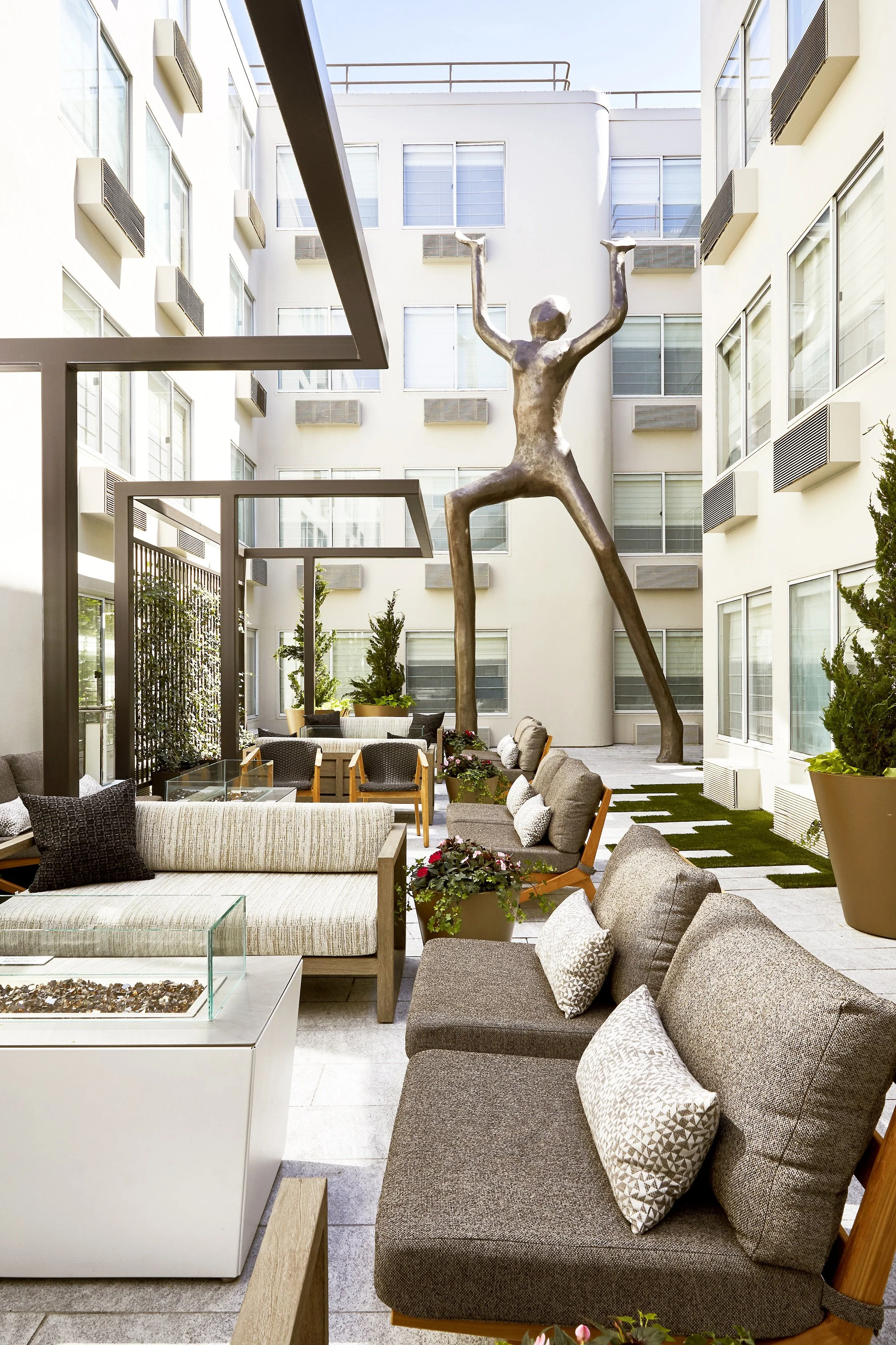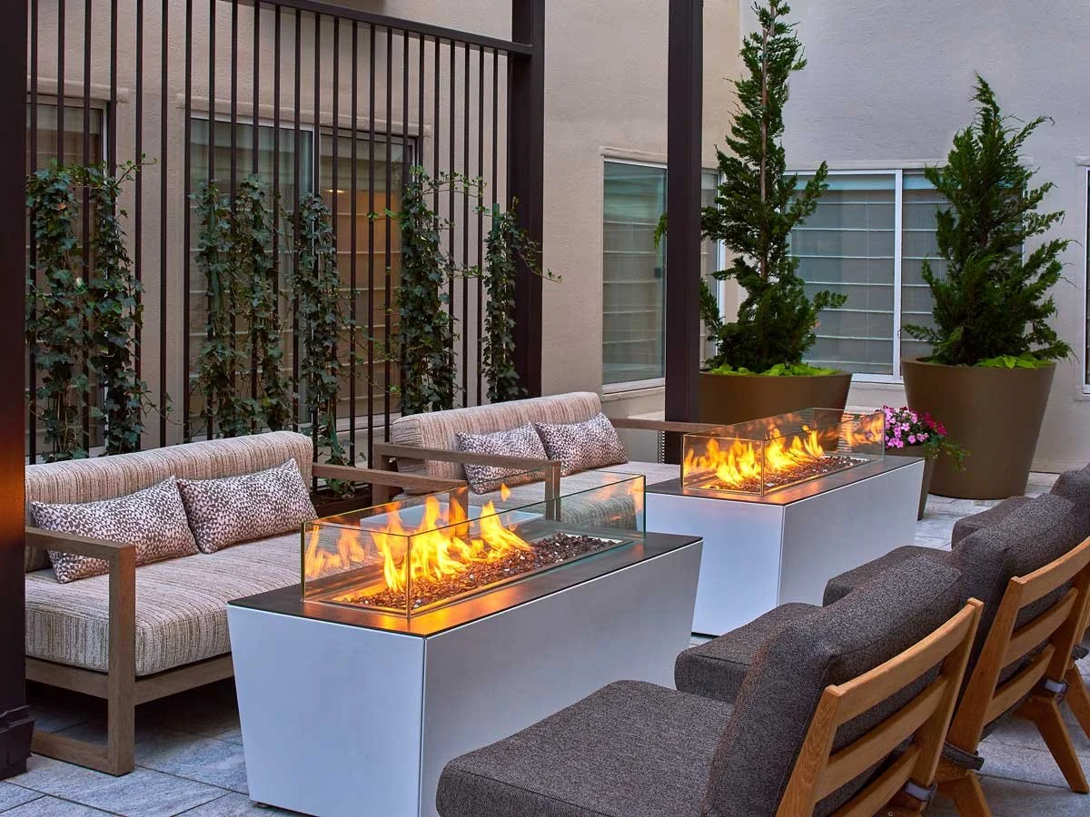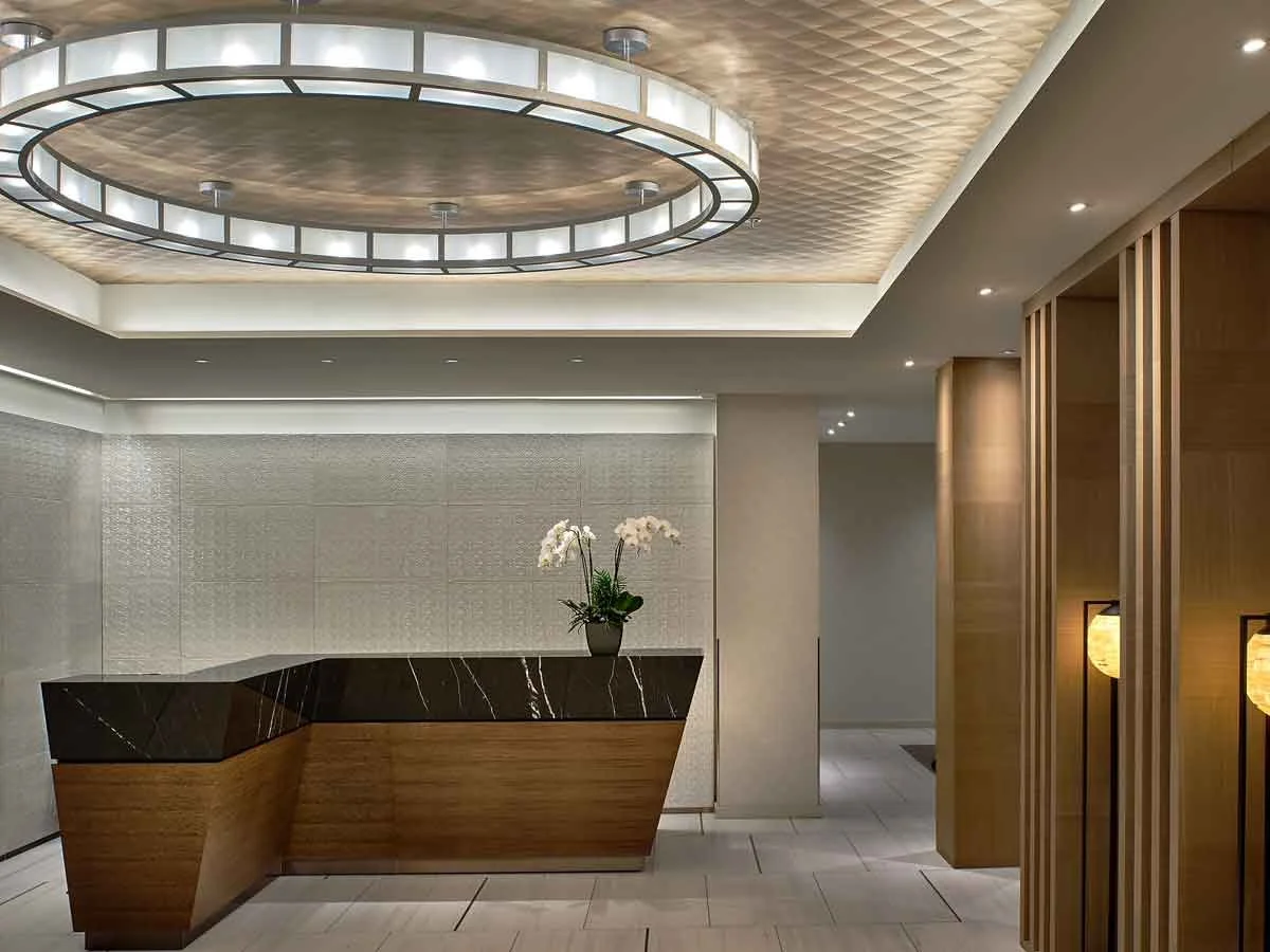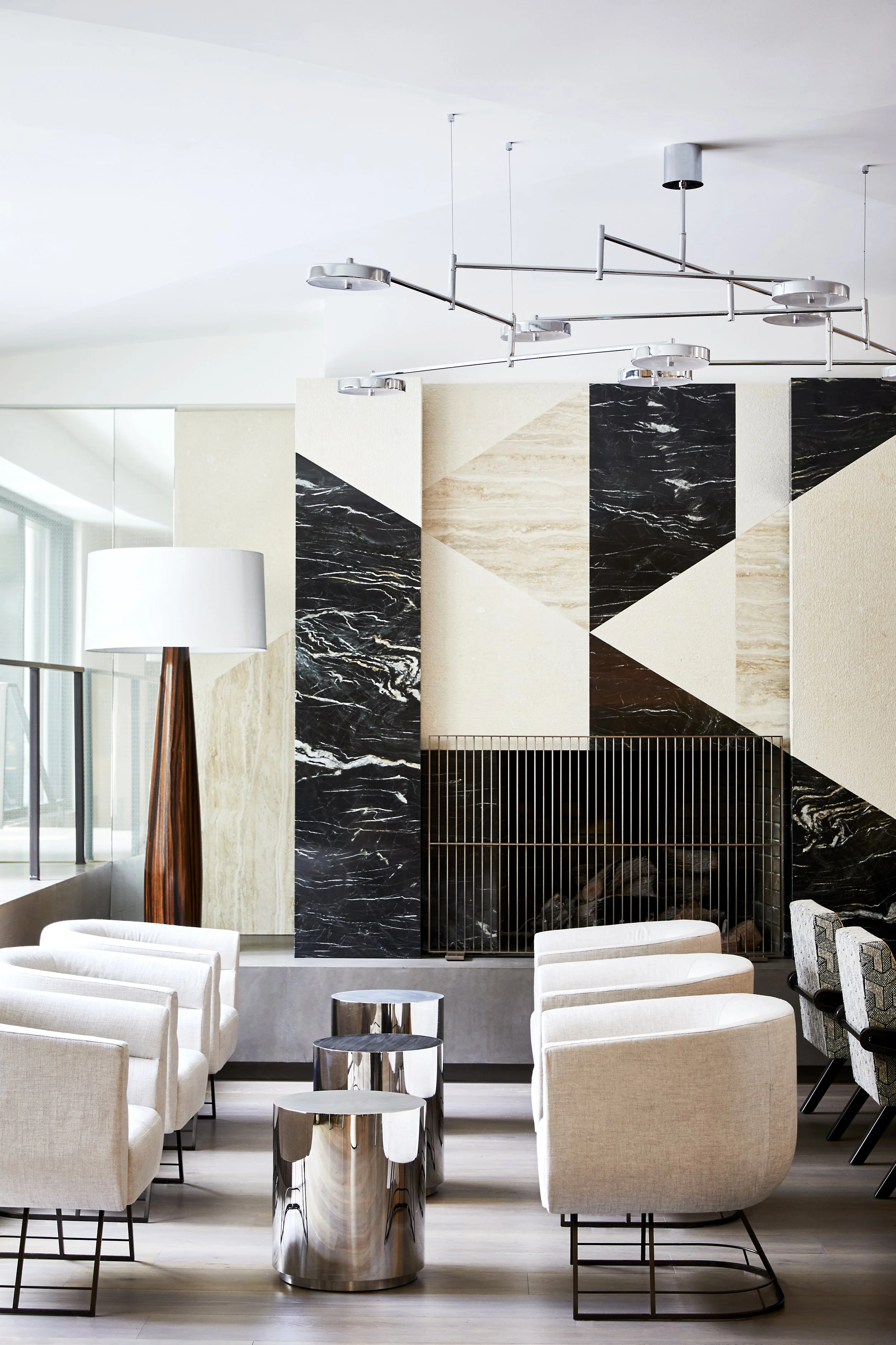 A gut renovation of an existing hotel transformed the property into a light, bright, and modern building that welcomes guests to San Francisco’s Fisherman’s Wharf. Luxurious touches, such as the custom marble fireplace in the lobby, elevate the space. A sophisticated neutral palette is enlivened by tailored details and bold artwork selections. This project was completed in collaboration with Paletteur.